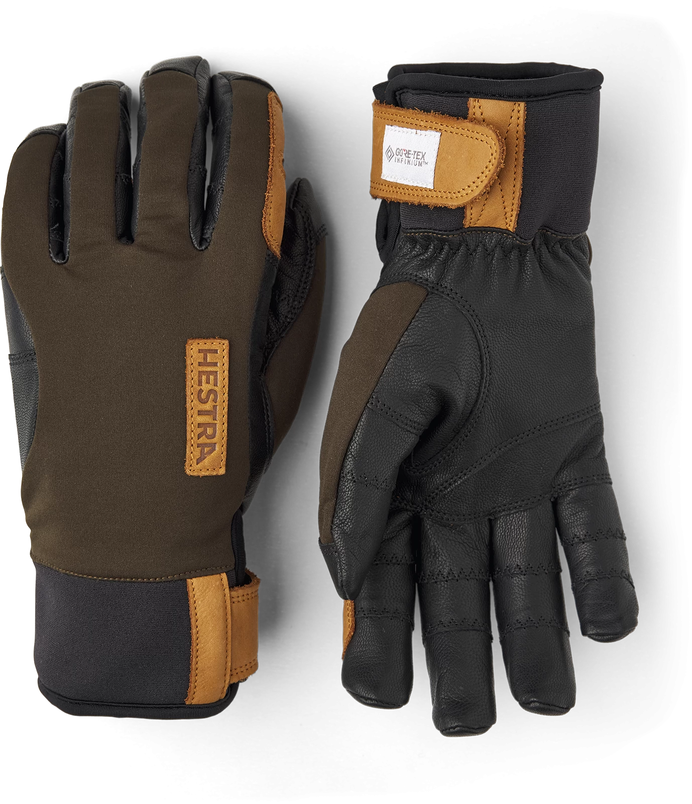 The Ergo Grip Active Wool Terry is a versatile and supple 5-finger glove for all types of outdoor activity. Its construction, with its pre-curved fit and carefully placed seams, provides exceptional mobility and fingertip sensitivity. Sewn in Hestra’s hardwearing goatskin leather with a thin liner in wool terry to warm and wick moisture away from the hand. The backhand is in windproof GORE-TEX Infinium™ stretch fabric with exceptional breathability. A perfect working glove for hiking, outdoor recreation, hunting and fishing in spring, summer and autumn. And equally functional at high levels of activity in the winter, when ski touring, Nordic skiing or backcountry skiing.