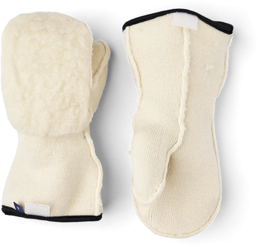 An extra warm mitten liner for Hestra’s popular children’s glove the Fjellvotten Jr and many other children’s mittens. Sewn in soft, flexible wool terry with an extra layer of warming wool fleece on backhand. Both materials bind plenty of insulating air and the properties of the wool mean the liner is warming even if it gets damp.