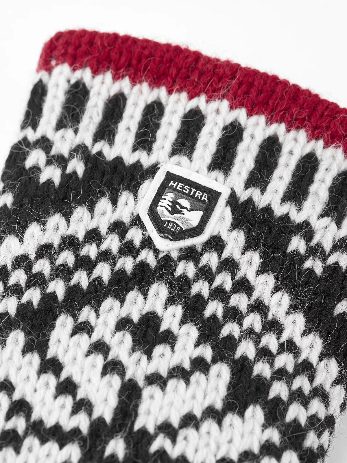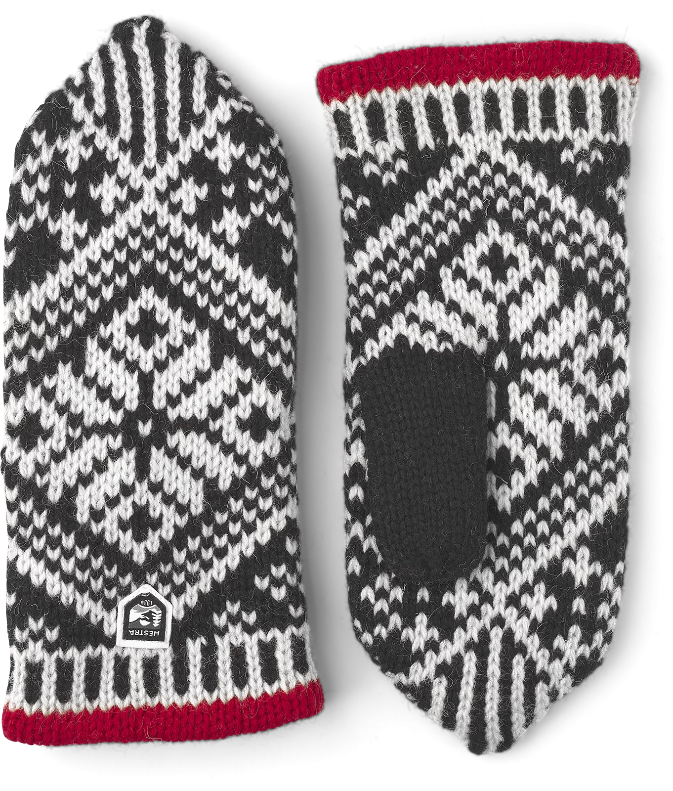 A retro-inspired knitted mitten in soft, warming wool. Knitted in a classic Nordic Fair Isle design in wool yarn blended with a little polyamide for extra strength. The cuff is straight and finished off with a decorative contrast colour. A knitted lining in a wool blend adds extra warmth. A beautiful, warming mitten for frosty autumn and winter days.